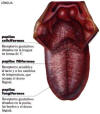 Toda su superficie, a excepción de la base, está recubierta por una mucosa, en cuya cara superior se encuentran las papilas, los receptores químicos de los estímulos gustativos.