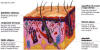 La piel es un tejido delgado y resistente que recubre todo el cuerpo, proporcionándole una cubierta protectora e impermeable. Es muy fina en algunos puntos, como los párpados (0,5 mm de espesor), y más gruesa en las palmas de las manos y las plantas de los pies (hasta 5 mm de espesor).